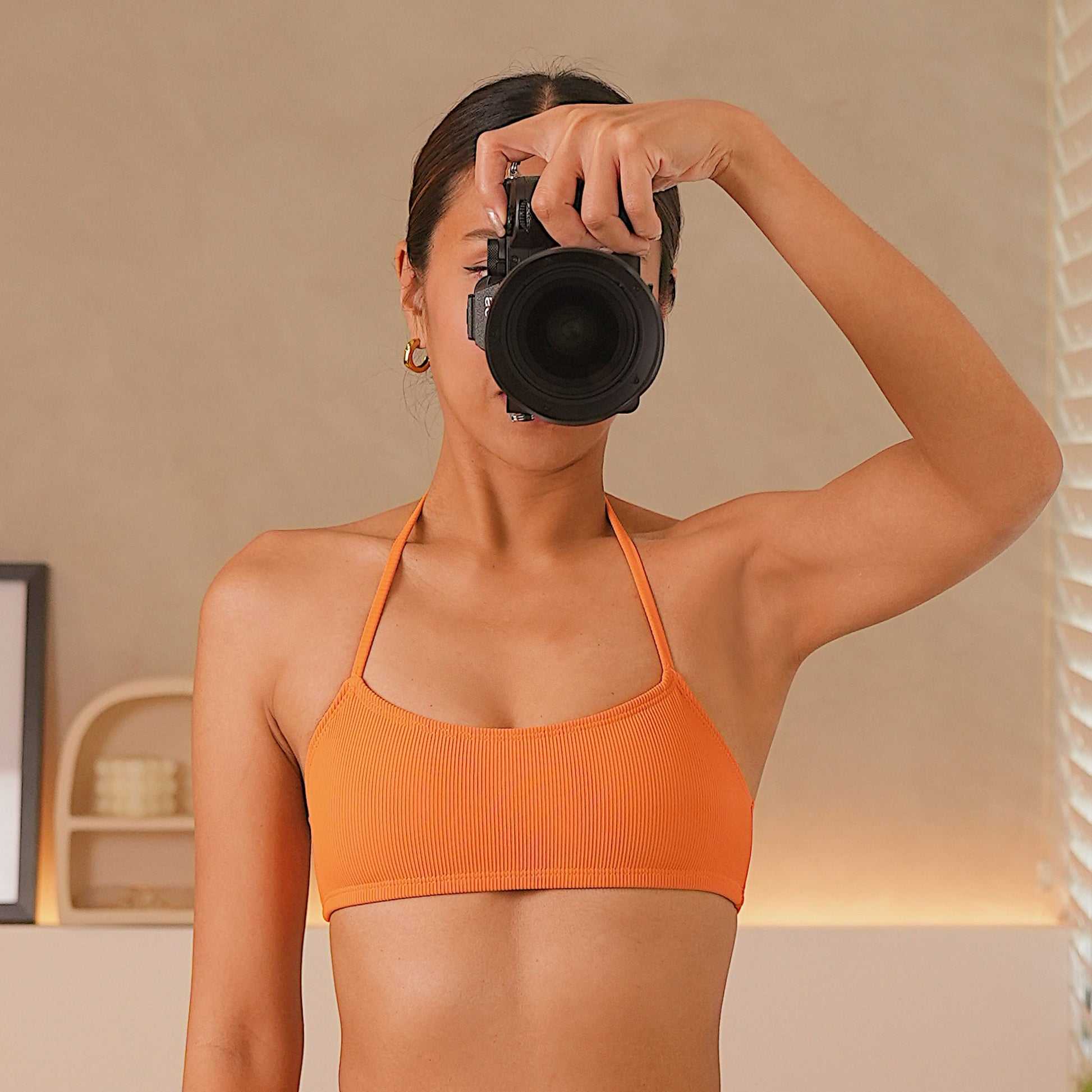 The Toni bikini is designed for those who appreciate a sporty yet functional design. The top features a straight neckline with halter neck straps, ensuring comfort and protection during intense activities like surfing. Its high-waisted bottoms provide a flattering and snug fit, making it a versatile staple for water activities.